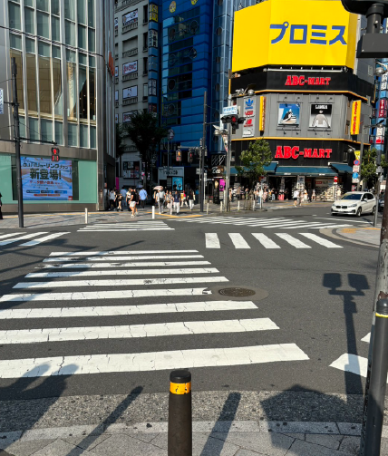 横断歩道を渡って、ABCマートの左の道に向かって進みます。